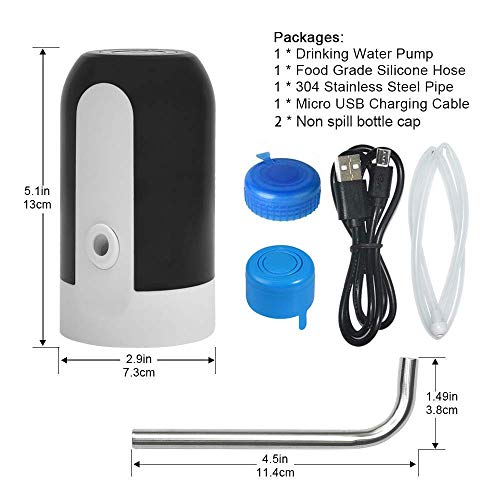 - Safe & Healthy: Electric water bottle pump, food grade silicone hose, 304 stainless steel, high density ABS plastic, BPA free drinking water pump, odor-free and non-toxic, cold and high temperature resistance. The built-in silicone seal prevents water from leaking.